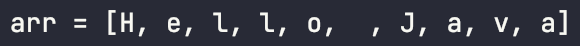 - 문자 배열의 길이는 문자열의 길이와 같으며, 공백 또한 문자형으로 변환된다.
