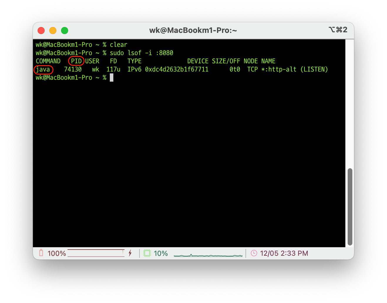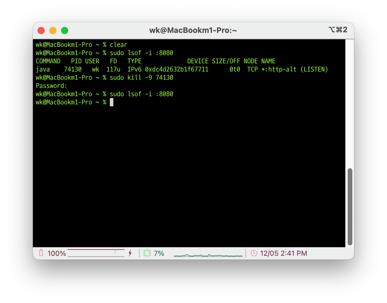 Port를 종료하는 방법은 Terminal에서 이루어지며 명령어는 다음과 같다.