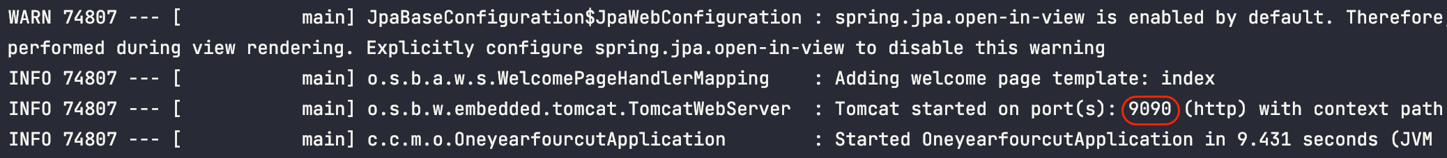 > Task :OneyearfourcutApplication.main() FAILED