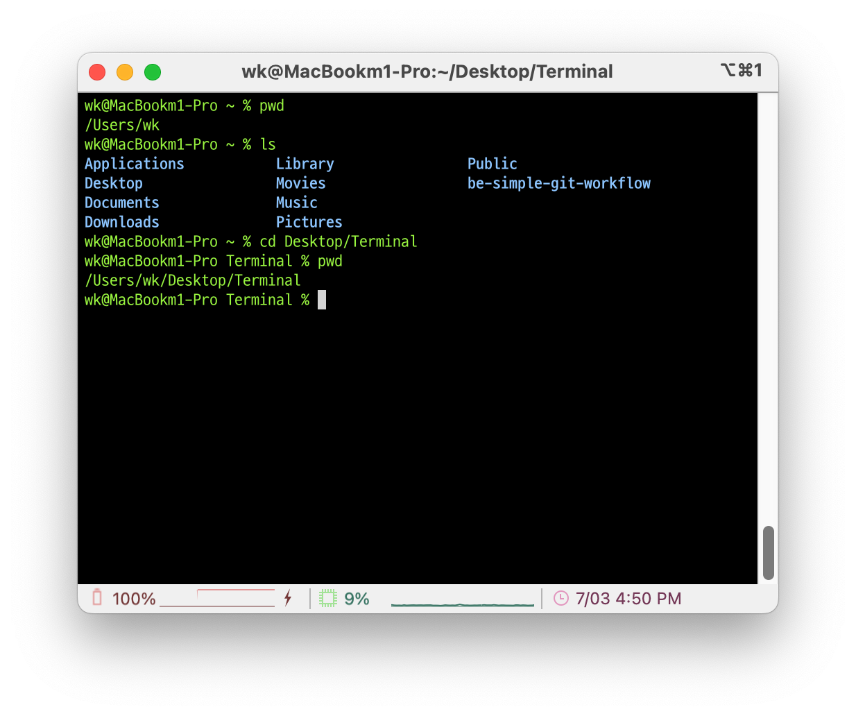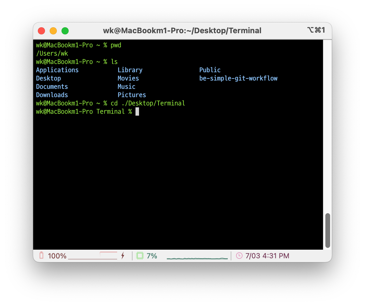 EX1. Users > wk > Desktop > Terminal로 이동 (하위 폴더로 이동) : ./