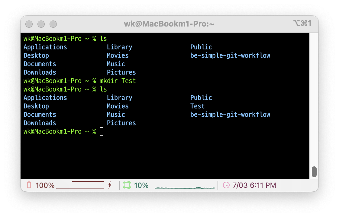 - 터미널로 현재 경로에 새로운 디렉토리(폴더)를 생성할 수 있는 명령어