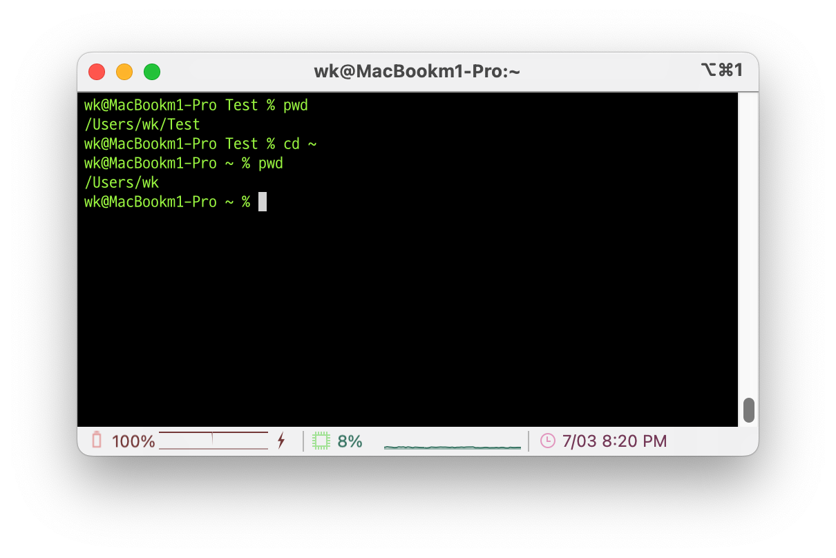 cd ~ # ~를 생략한 cd만 작성해도 Home 디렉토리로 이동