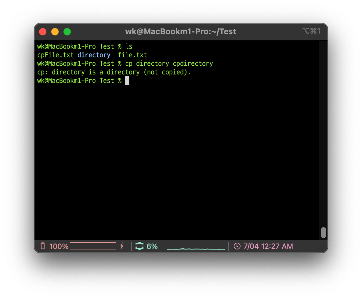 - "cp"만 사용했을 때는 디렉토리(폴더)는 복사할 수 없으며 옵션을 통해서 디렉토리를 복사할 수 있다.