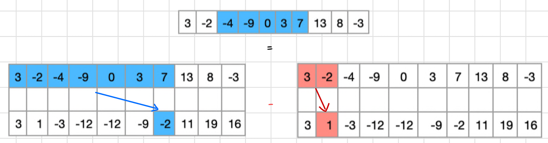 위의 방식을 누적합에 적용하면 다음과 같다.