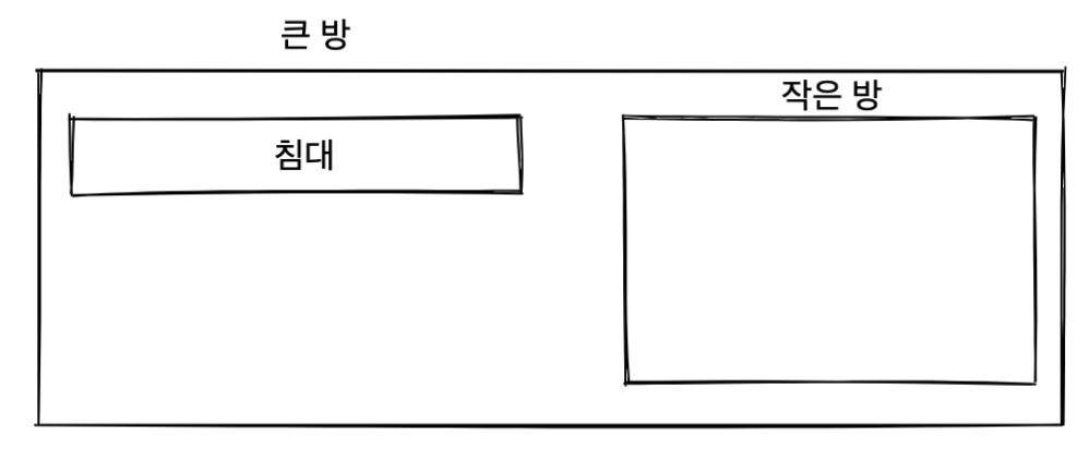 - 예를 들어 다음과 같은 방 구조에서 큰 방에서 지내는 A군이 있다. -> 큰 방 A1 = new 큰 방();